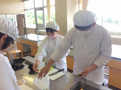 6年生は家庭科で、炒める調理法について学習しています。今回は、「野菜炒め」と「スクランブルエッグ」作りにチャレンジし、パンにはさんでいただきました。