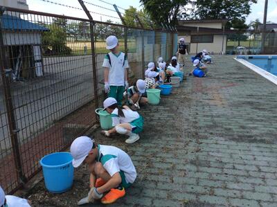 みんなできれいにしたプールで、安全に楽しく泳ぎたいですね。