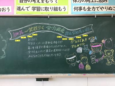 朝の教室では、どの学年の黒板にも、担任からの熱く温かいメッセージがありました。