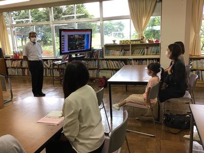 初めに、校長先生から長瀞小学校の様子についてお話がありました。スライドを見て、「お兄ちゃんいるねー」という声も上がりました。