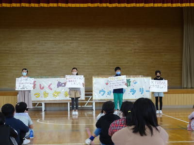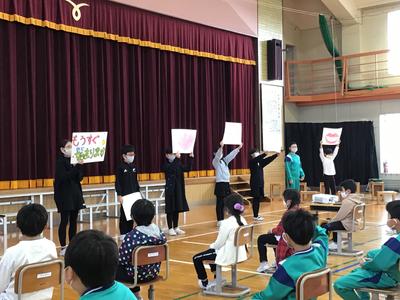 国語の授業や体育の表現運動でも取り組んできた「スイミー」。みんなの声をCDに録音し、体で振りをしたり、ダンスをしたり、体形が変わったり…動きにキレがあり、あっという間にスイミーの世界に引き込まれました。みんなの力を合わせれば、大きな魚を追い出せる!あきらめずに、みんなで踏み出そう!コロナにも負けないぞ!そんなメッセージが込められていました。