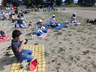 ナレーターの声に合わせて、いもむし役がかわいい振りの演技をします。けんかをしていたいもむしたちも仲よくなり、チョウになり、大きな世界を見に行きます。「ともだちっていいな」の群読では、「ともだちって…」「ともだちがいるから…」1年生のこれまでの成長をスライドで振り返りながら、ともだちのよさに気付かせてくれました。