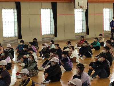 久しぶりに全員がそろった体育館。静かな落ち着いた表情のみなさんですが、どこか寂しさを感じます。