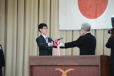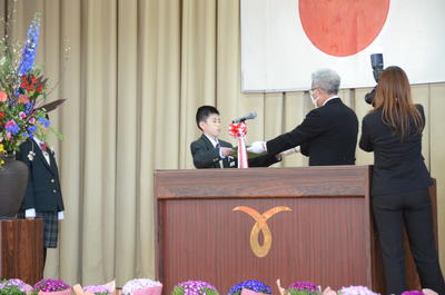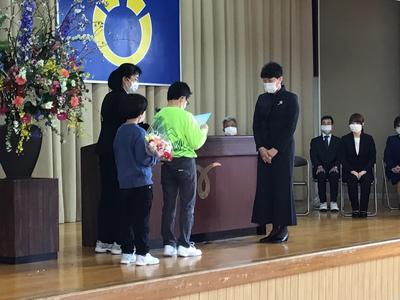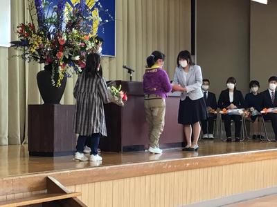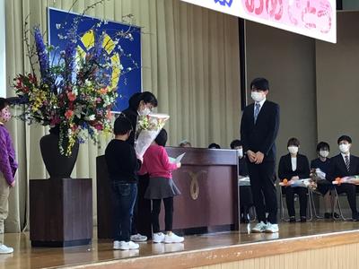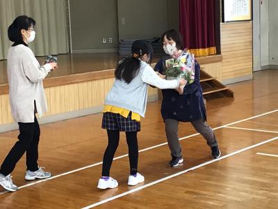 代表児童が、お別れの言葉を発表し、花束をお渡ししました。先生方との思い出がよみがえり、涙をこらえました。