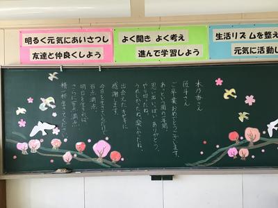 先生方と長瀞小学校で過ごしたことは、かけがえのない宝物です。先生方と別れるのは本当に寂しいです。でも、また、どこかでさらに成長した姿を見せ、元気に会えることを楽しみにしています。先生方、本当にありがとうございました。