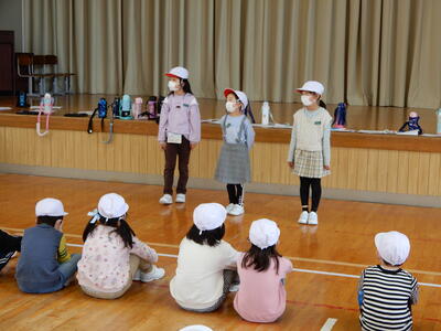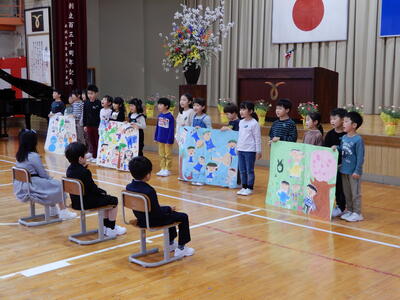 2年生が1年生に向けて、歓迎の言葉を発表しました。長瀞小学校には楽しいことがいっぱいあることが伝わったのではないでしょうか。これからの小学校生活、たくさんの楽しいことが待っていると思います。いろいろなことに挑戦して、充実した1年間にしてほしいです。