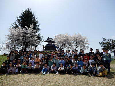 1・2年生は、歩き方の学習もかねて公民館でお花見の校外学習です。公民館の桜もとてもきれいですね。