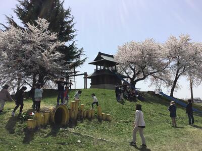 グランドやかりがねの丘、校門の通りの枝垂れ桜もとてもきれいです。
