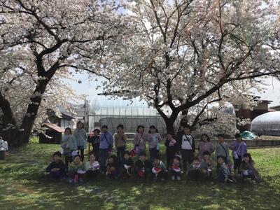 今日は桜をバックに全校写真やクラス写真を撮りました。