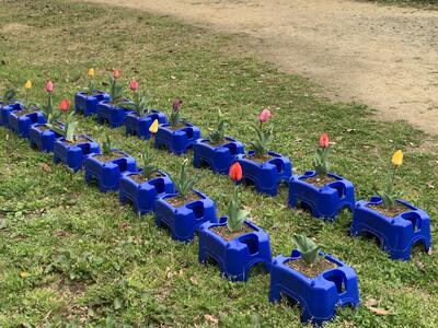 パレット学年が植えたチューリップも、スーパー学年が植えた人権の花のビオラやパンジーもきれいに咲きました。
