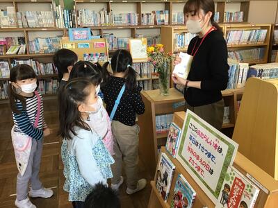 「どの本にしようかな」「この本知ってる!」…うれしそうな声がきこえてきます。