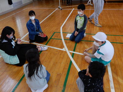 12の班ごとに、それぞれ自己紹介をしたり、ゲームをしたりして、楽しく活動することができました。