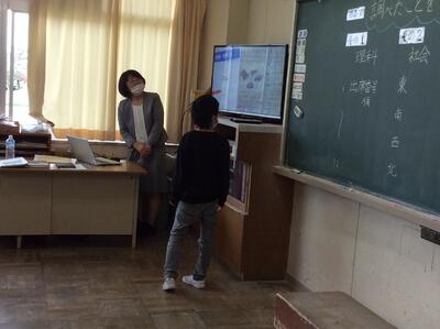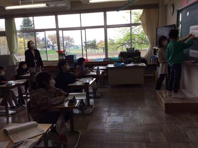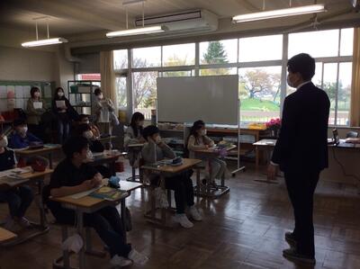 さっそく学年に入って外国語の学習を一緒に行いました。