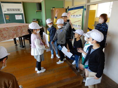 「こっちだよ。」「一緒に行こう。」などの優しい言葉でリードする2年生。1年生も2年生もにこにこで、みんなの笑顔があふれたすてきな時間になりました。