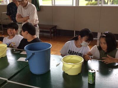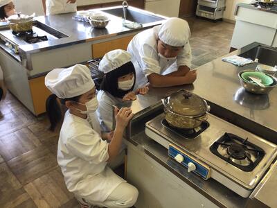ガラスのなべを覗き込みながら、ブクブク泡だつ様子やにおいを感じながら、楽しそうに行いました。