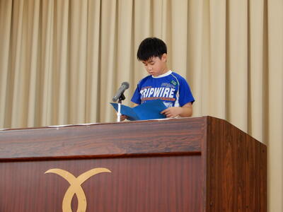 運動会結団式が行われました。企画部、小道具看板部、応援部の幹部が紹介され、運動会に向けて、本格的に活動が始動しました。昼休みには、全校での応援練習も始まり、赤白両組ともに気合が入っているようすです。