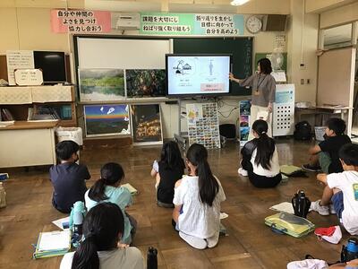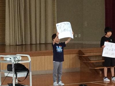 活動ロングの時間に、エコロジー委員会の発表が行われました。環境に関するクイズを出し、仲良し班で相談しながら答えを考えました。エコロジー委員会では、週ごとにリサイクルするものを決めて回収しています。いつもご協力ありがとうございます。これを機会に、さらに環境を大切にする心が広がることを願います。