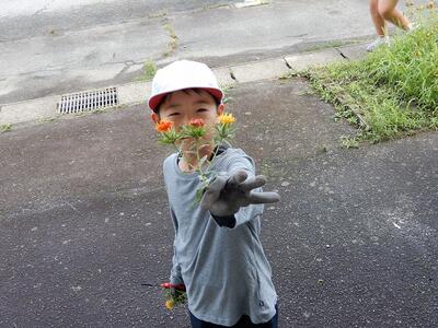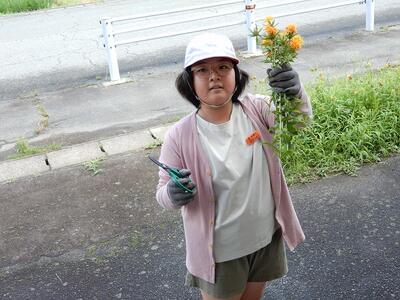 4年生が春に種をまいた紅花が、きれいな花を咲かせました。そこで、紅花を収穫し、紅花を使ってできる活動を行おうと計画しました。また、季節の風物詩として各教室に飾ってもらおうと、各学年へプレゼントしました。これからの活動もとても楽しみです。
