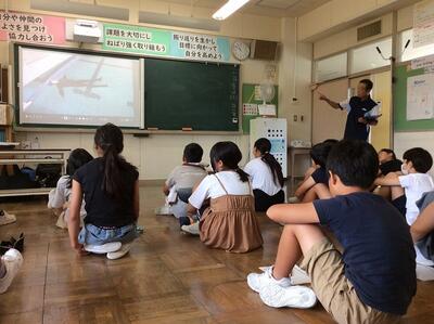 5・6年生を対象に、水泳学習の締めくくりとして着衣泳を計画しました。残念ながら天候不順で実際にプールを使っては実施できませんでしたが、セントラルスポーツ東根の方を講師として招き、講義をしていただきました。自分たちでできる水の事故での対応を体験を通して学ぶことができました。