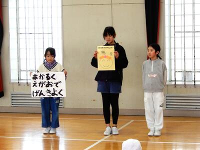 前半は体育館で、後半は各教室でオンラインにより実施しましたが、元気いっぱいなかけ声で盛り上がりました。