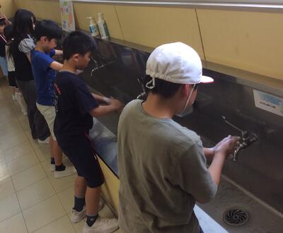 7月9日、ぱくぱくヘルシー委員会の企画で手洗い選手権を行いました。